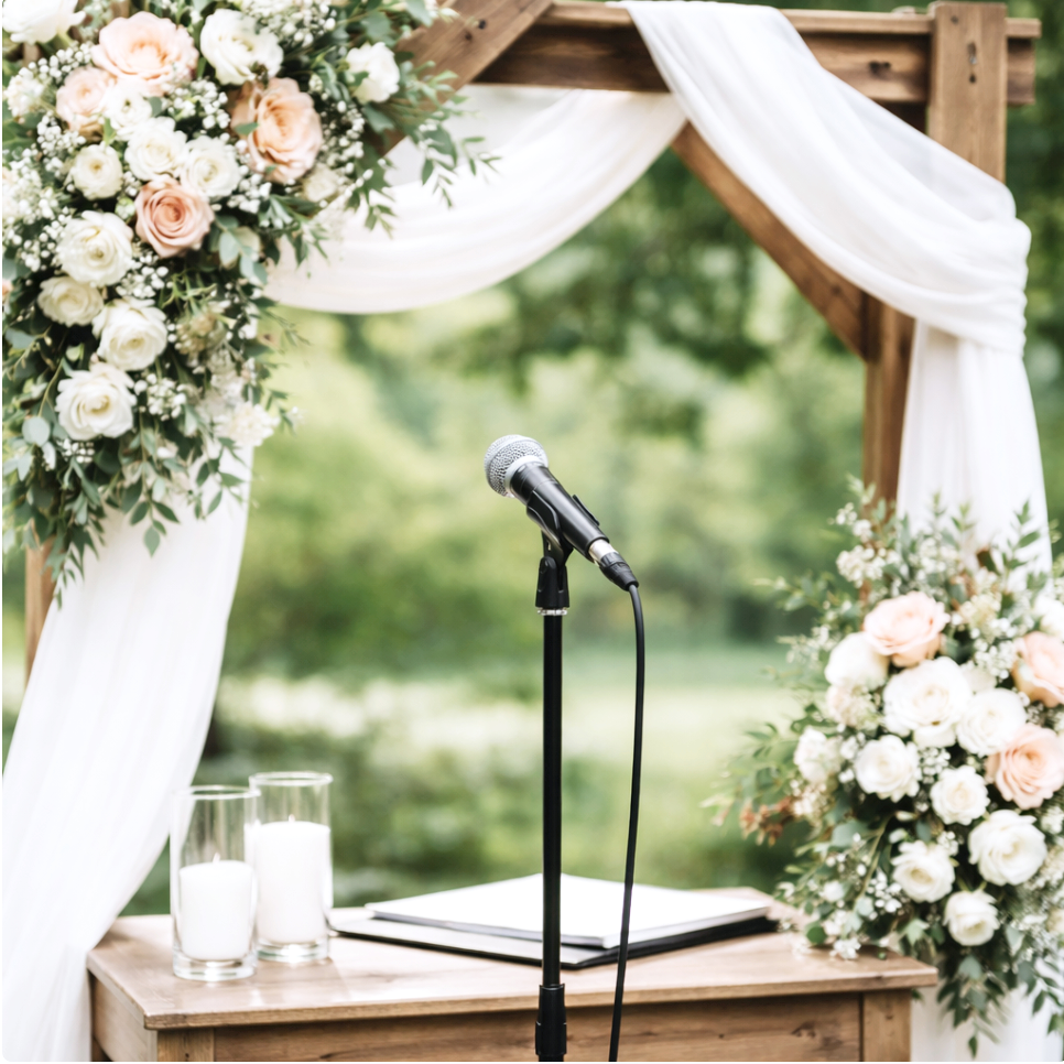 A high-quality sound system ensuring every word of your ceremony is heard clearly, recommended for gatherings of 20 or more guests.