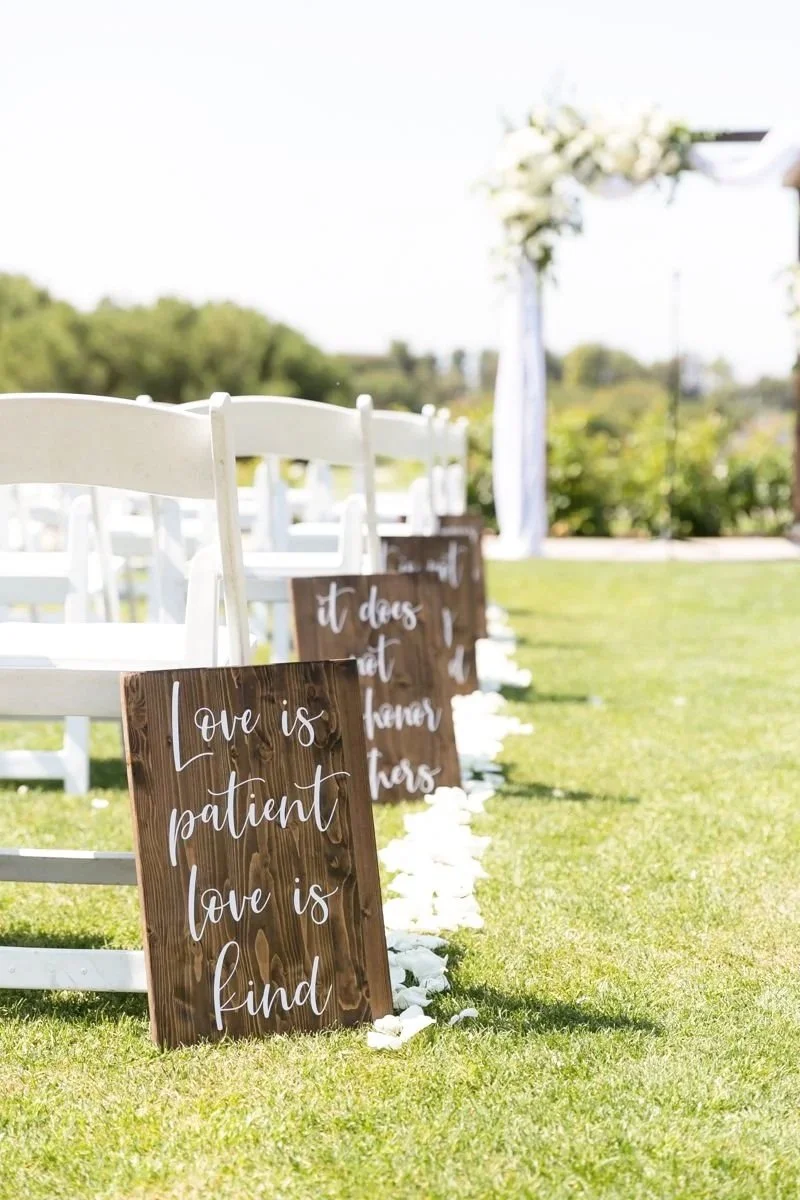 Tastefully displayed signage to guide guests and enhance the overall aesthetic of your ceremony space.